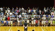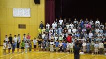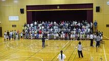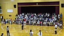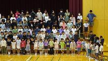 今朝の音楽朝会は、10/18(土)の学習発表会で披露する全校合唱の並び方について確認し、その後、合唱を1回行いました。
