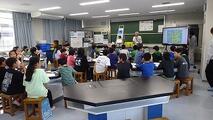 「(株)水みらい広島」の皆さんを講師として、水道水に関する出前授業を、午前中に1年生、午後から4年生が受講しました。江田島の水道の歴史、上水場のしくみ、水道水ができるまでのことなどを丁寧に説明していただくとともに、水の濾過について実験で教えていただきました。水の大切さを改めて実感する学習となりました。