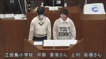 6年生を対象に、市議会の仕組みや役割を学び、市政への興味・関心を高めるための「市議会アドベンチャー」が開催されました。本校の児童は、江田島市をさらに元気にするための方策について提案しました。