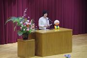 校長式辞では、新入生に向けてアンパンマンを例に挙げ、「かっこいいヒーローをめざして、交通安全、挨拶、返事をしっかり頑張りましょう」と温かいエールが送られました。