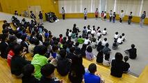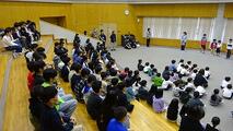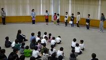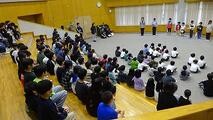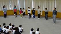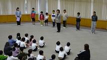 校長先生とあいさつをした後、各クラスの代表が4月の生活目標「気持ちのよいあいさつや返事をしよう」についての振り返りを全校児童の前で発表しました。