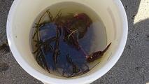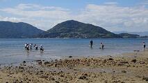 午後からさとうみ科学館の平山先生を講師に、グラウンド側の浜へ生き物調査に出かけました。みんな楽しそうに一生懸命生き物を採取していました。イシガニやオコゼ、エビなど採取していました。観察後、リリースしました。また、その後で、本日科学館に持ち込まれたカブトガニ2匹の放流も行いました。