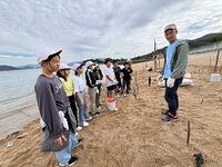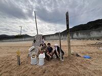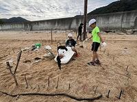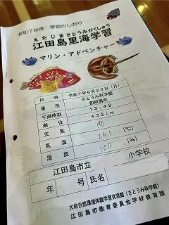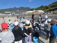 午前中、2年生と5年生が、学校そばの浜で合同学習を行いました。浜辺に打ち上げられた漂着物を収集したり、何かを作ったりする予定でした。あまり漂着物がありませんでしたが、収集したものから海の保全について考察していきました。