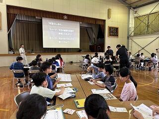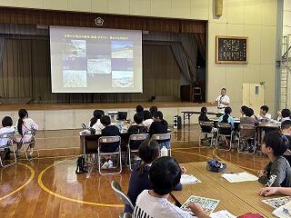 第2部は、体育館で、県立広島大学大学院の百武教授によるワークショップが開催されました。小中学生混合のグループでしたが、海に関することについて楽しく学習することができました。