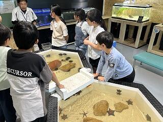 5年生は、切串小学校5.6年生と一緒にさとうみ科学館で学んでいます。天気の関係で、今日は海に行かず、室内プログラムを行うことになりました。
