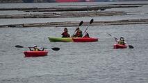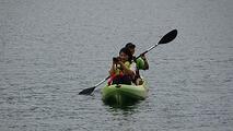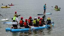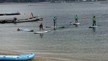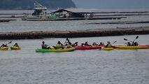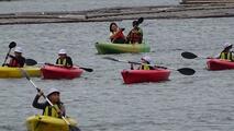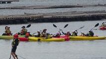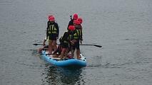 最初はなかなかうまくいかない児童もいましたが、次第に上手に漕げるようになり、最終的には筏の傍まで行っていました。曇り空で暑くなく、楽しい体験となりました。