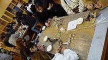 色とりどりのパーツの中から「これだ!」と思うものを自分たちでセレクト。親子で相談しながら、卒業式当日が待ち遠しくなるような、個性あふれる素敵なコサージュが完成しました。