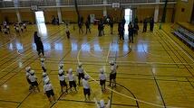 2コートに分かれて、保護者チーム対児童チームの対戦!最初は静かな立ち上がりでしたが、後半は大人も子どもも夢中に。体育館が歓声(と悲鳴?)に包まれる、活気ある時間となりました。